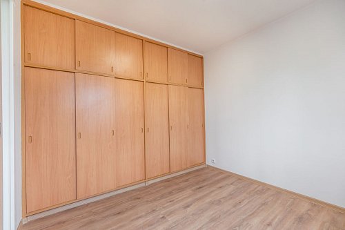 V ložnici se nachází praktická vestavěná skříň, která nabízí dostatek úložného prostoru.