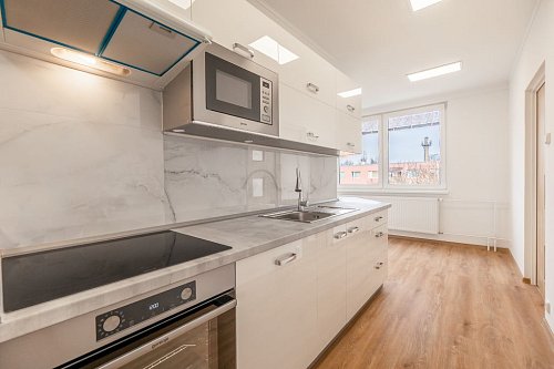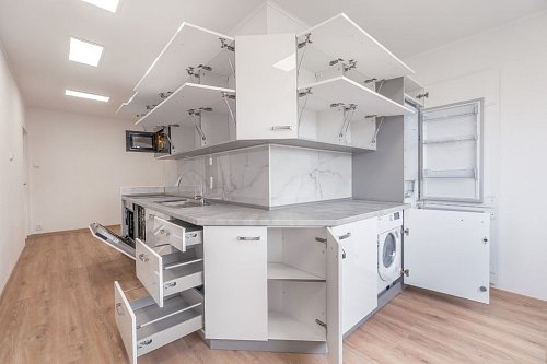 Součástí prodeje je moderní kuchyňská linka se zabudovanými spotřebiči: