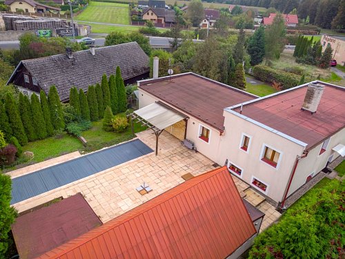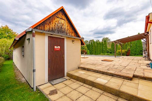 Tento dům v Zahrádkách u České Lípy představuje ideální kombinaci prostorného rodinného bydlení, moderních technologií a příjemného zázemí pro relaxaci. Díky samostatné vedlejší stavbě a velkému pozemku nabízí více možností využití, než je obvyklé u běžných rodinných domů.