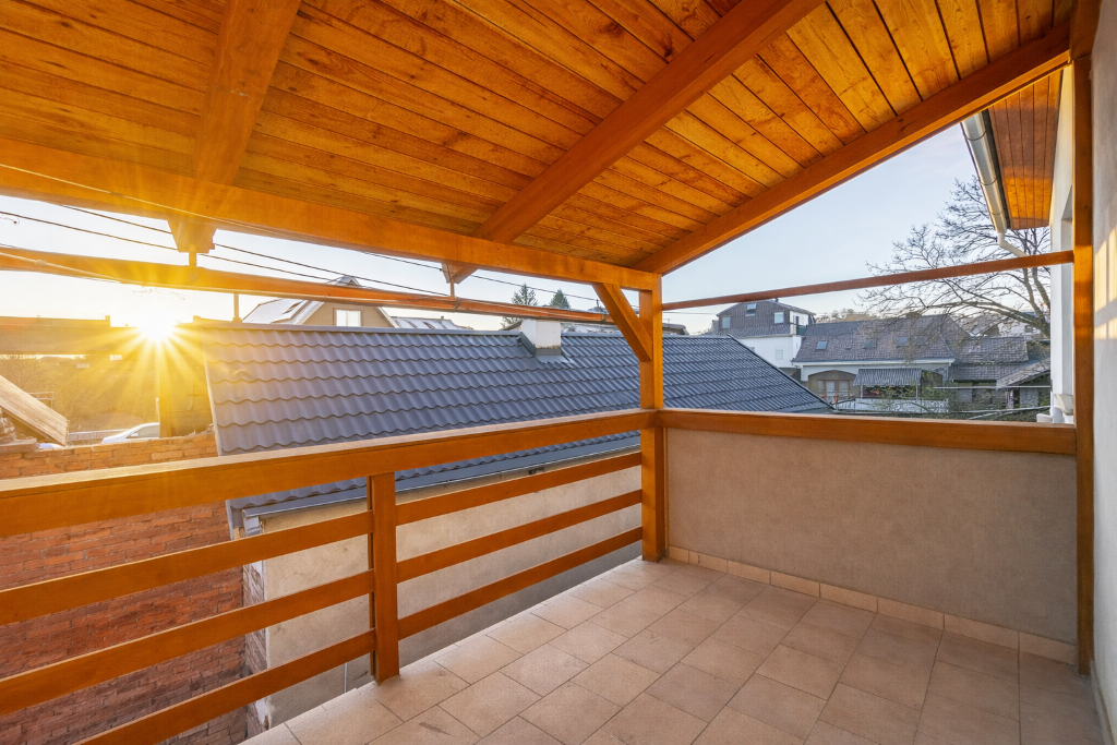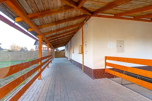 zastřešená terasa o velikosti 52 m² vhodná pro relaxaci nebo rodinné posezení
