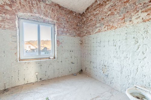K dispozici je přibližně 150 m² užitné plochy ve stavu hrubé stavby, což umožňuje dokončení přesně podle představ nového majitele.