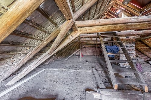 Rozsáhlý půdní prostor nabízí obrovský potenciál pro půdní vestavbu a vytvoření dalšího bytu, ateliéru či více obytných místností.